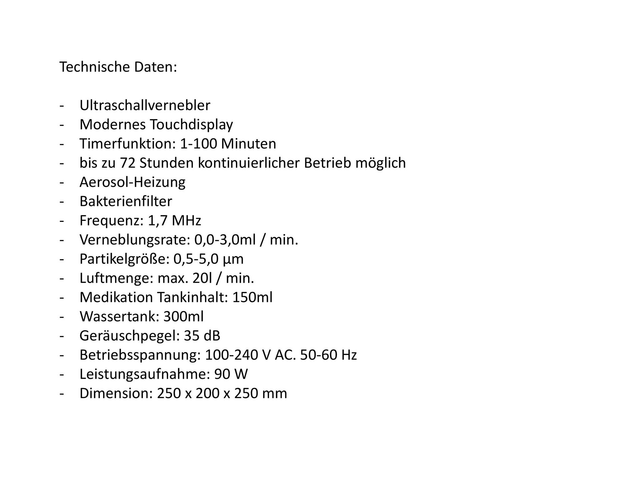 Verneblungsrate: 0,0-3,0ml / min.